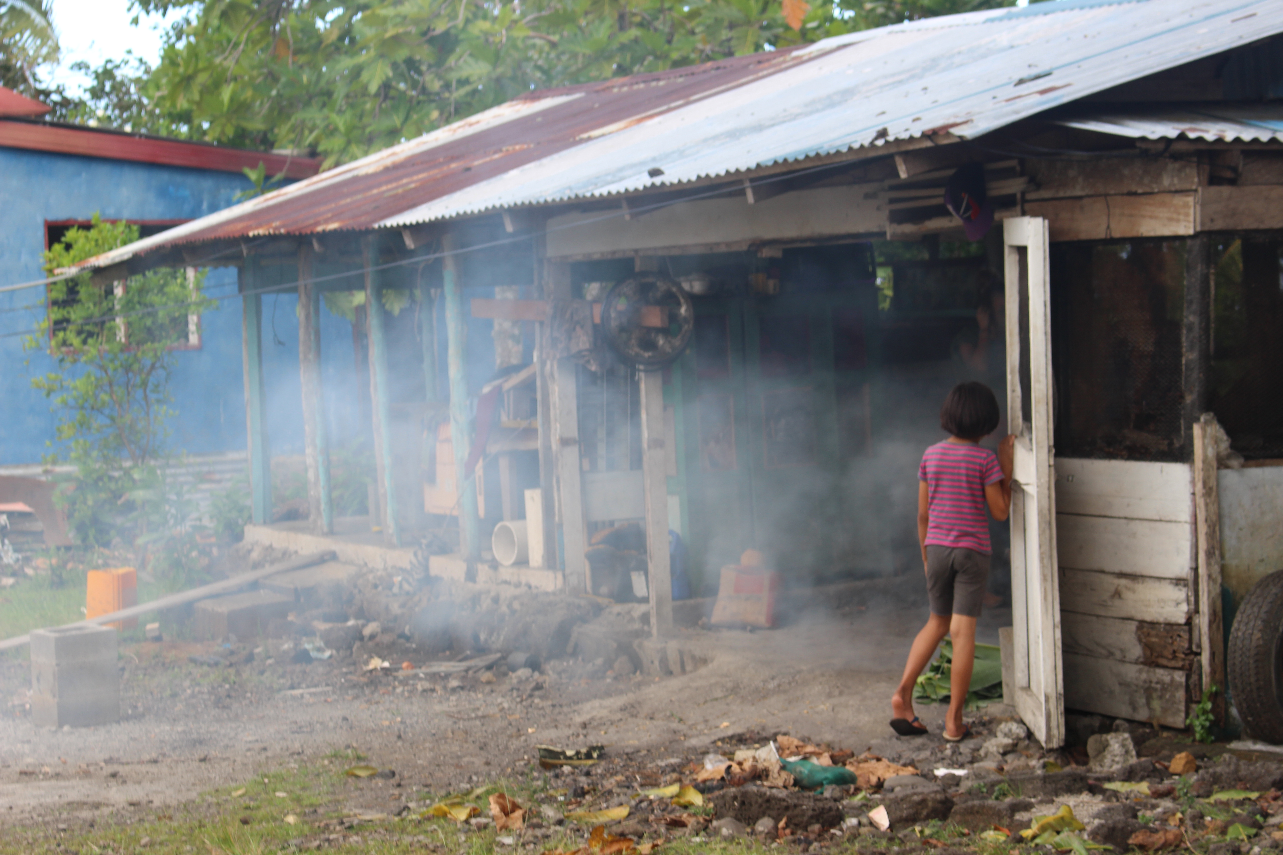 Umu fire in outside kitchen. Photo by Helen.