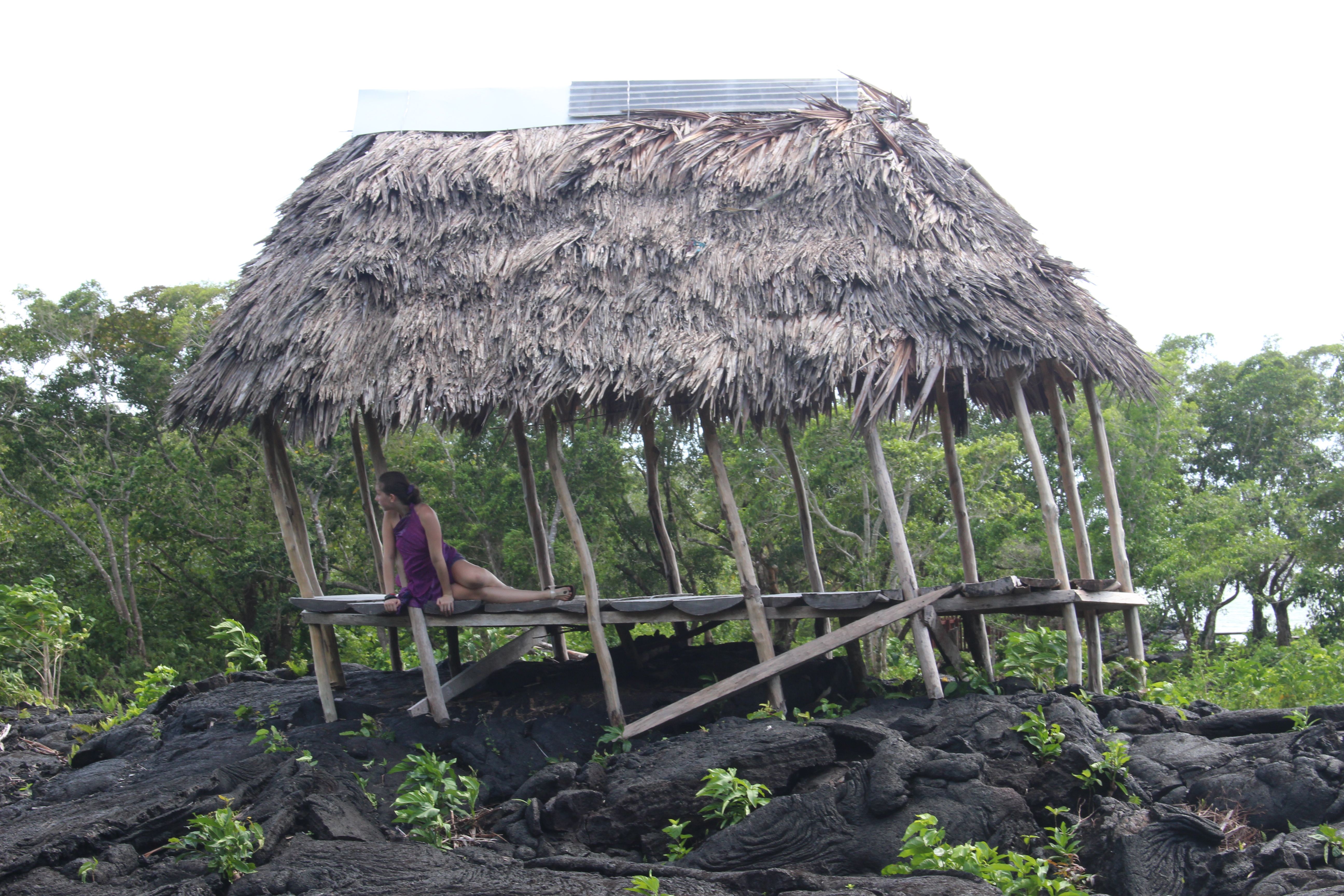 Helen in lava field fale. Photo by Ella.