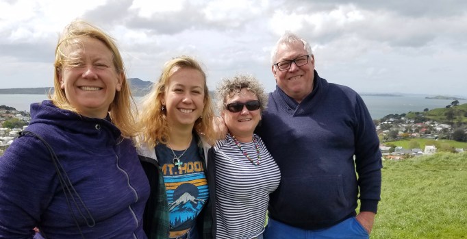 Previous Image Next Image 20170917_123520 Anna, Ella, Tisha and Andy, on top of Mt. Victoria, Auckland.