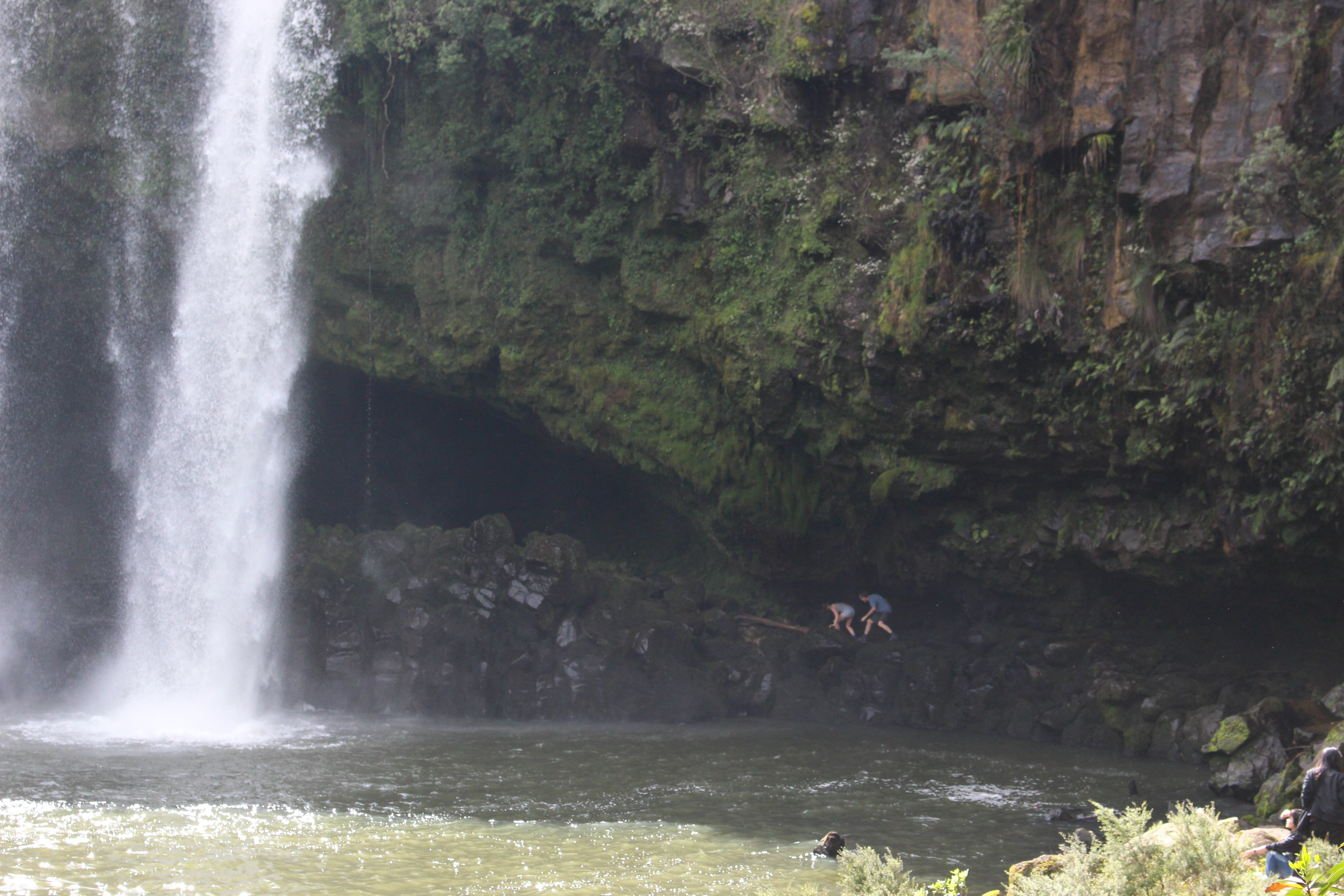 Doug and Helen climbing into Rainbow Falls.