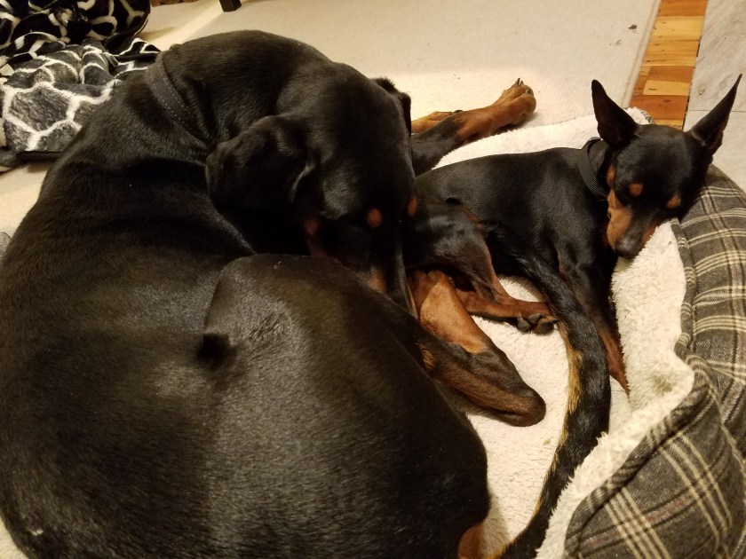Winnie and Buster (Doberman Pincer and Min Pin).