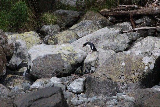 Previous Image Next Image IMG_1592 Blue penguin looking for a good route down rocks. When he succeeded, there was a resounding cheer from our boat of onlookers! Photo by Helen Strout.