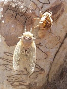 Previous Image Next Image 20171210_121248 Newly hatched cicada drying off on a Squiggly Gum Tree at Wollemi National Park. Photo by Helen.