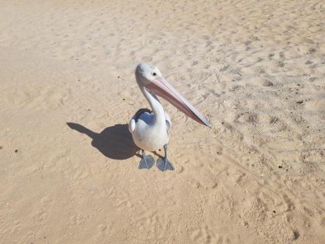 Previous Image Next Image 20180130_090125 Huge pelican, seeming a bit miffed at being left out of the feeding.