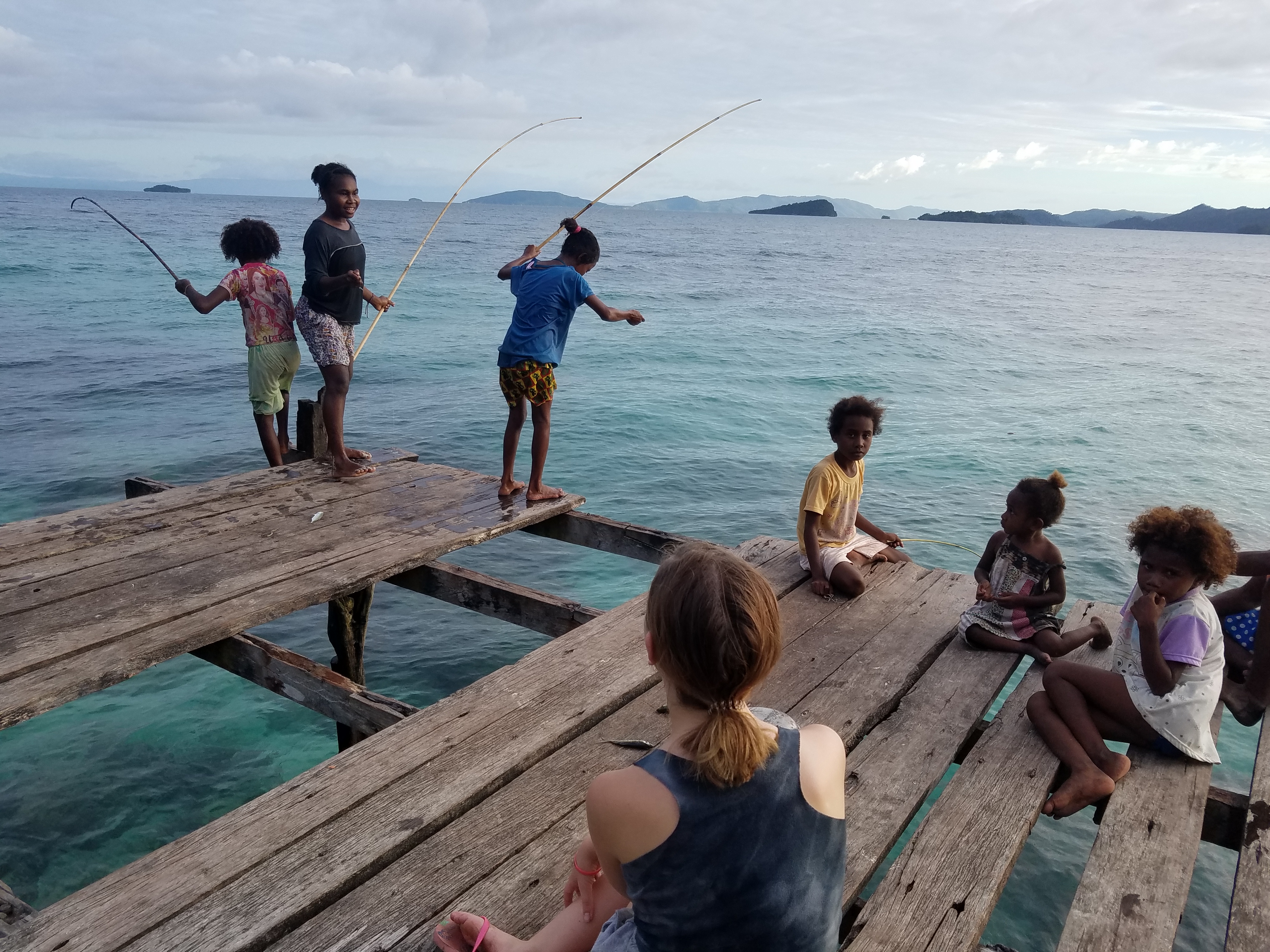 Villagers fishing off Warimpuren pier